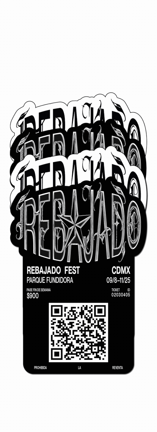 The custom typeface for this project, REBAJADO DISPLAY is a derivative of OT Neue Montreal, edited and combined with various serifs and swashes from blackletter fonts. The font is inspired by the low-budget album covers prevalent in this genre, and hand-drawn blackletter typography popular on clothing and art.
